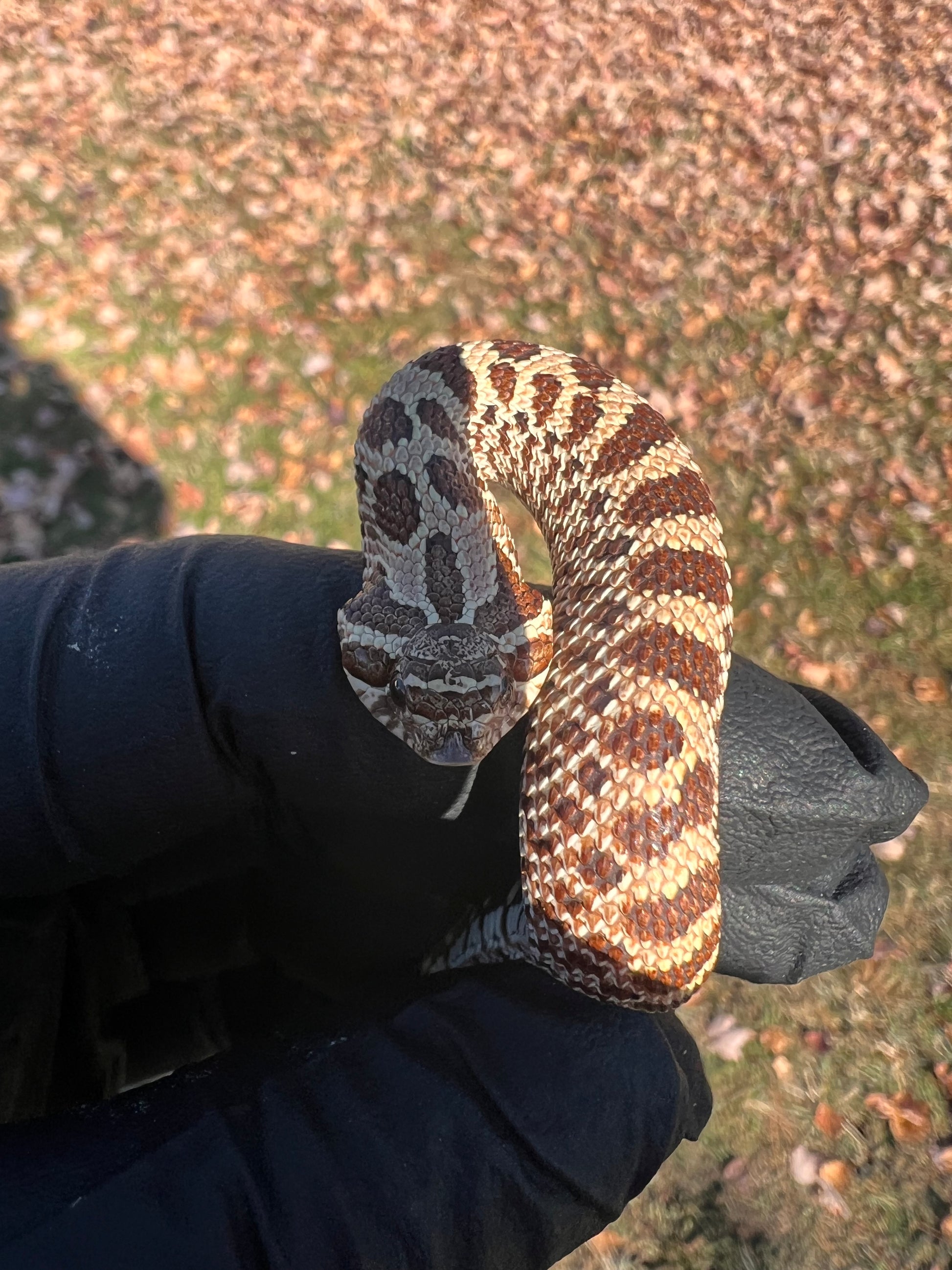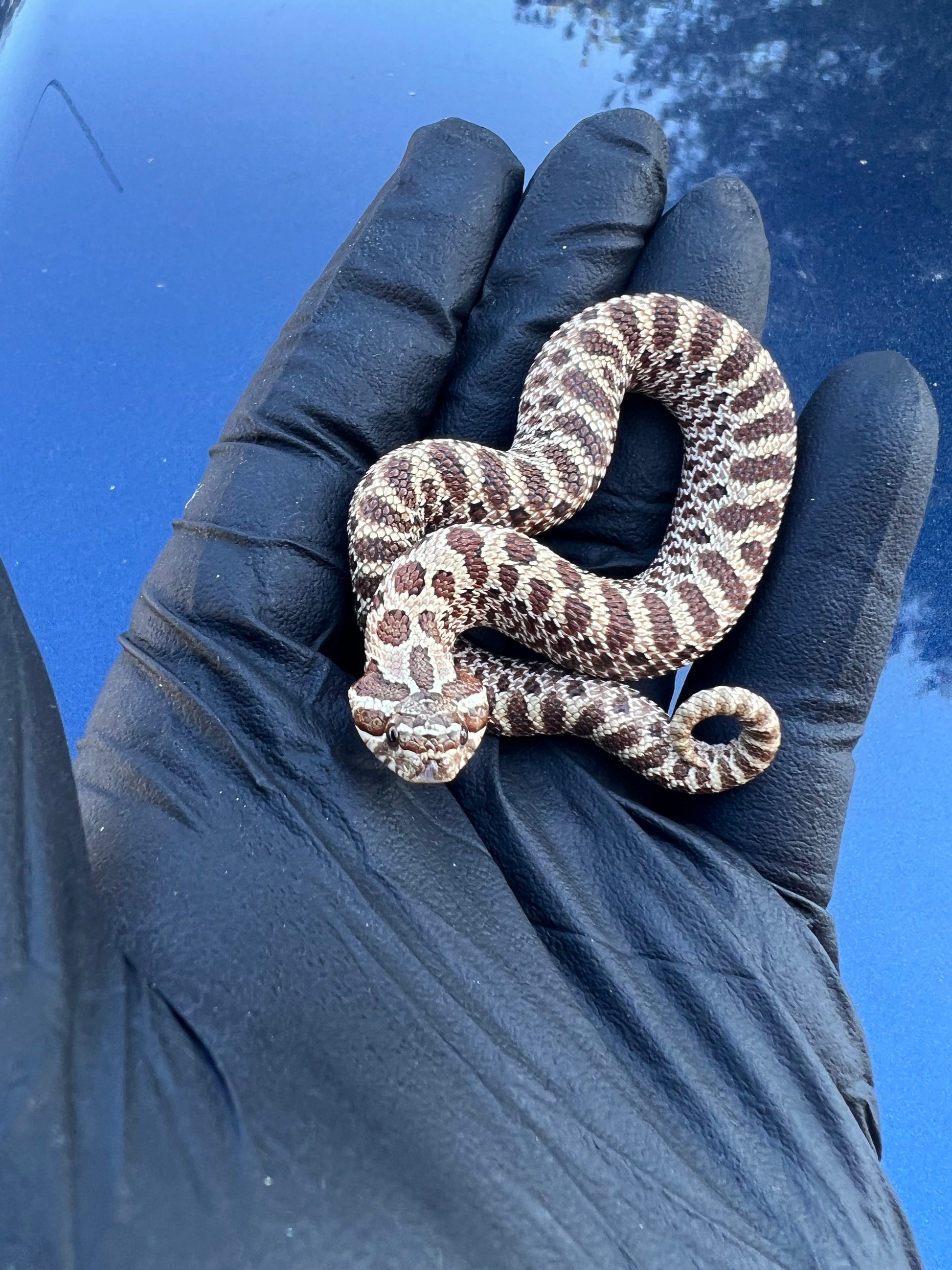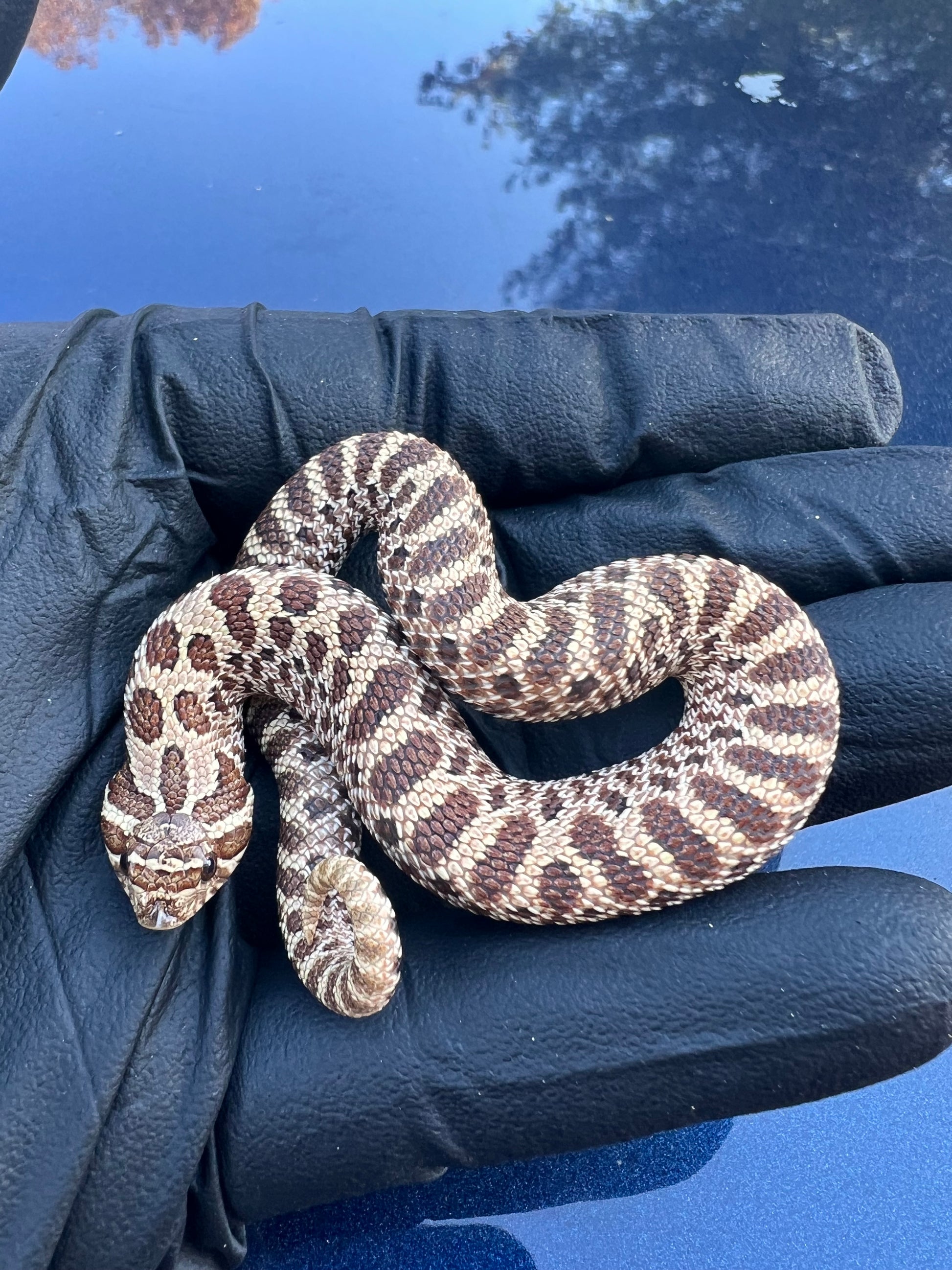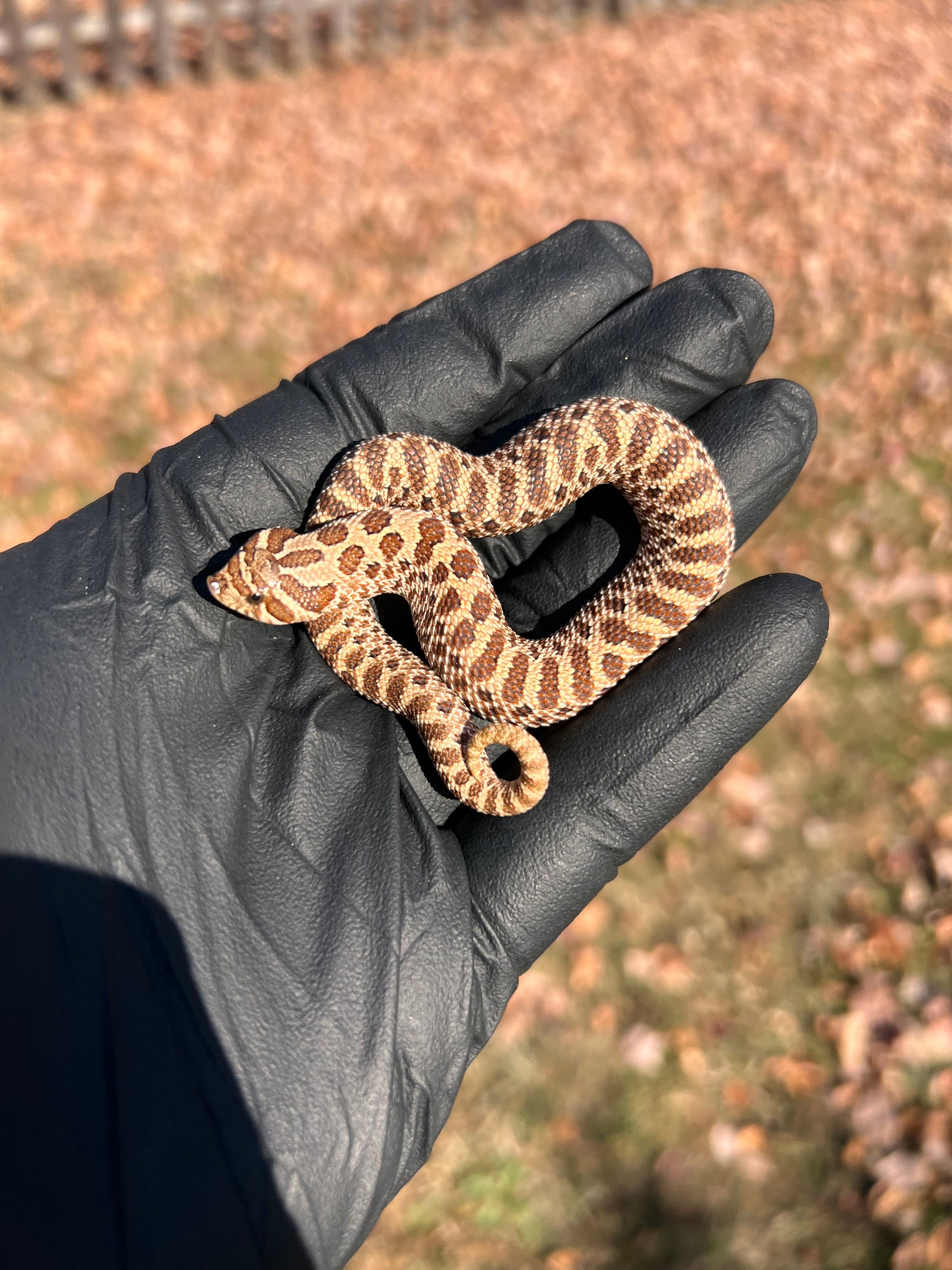Really nice hognose female chowing down on frozen/thaw pinkies with gusto. This girl is growing great and handles well . She is het for albino so if you’re looking to breed she would be a great addition to any collection. She would also make a fabulous pet requiring easy care . I can help with questions on setup just shoot me a email @ge_ingram@yahoo.com. All of my animals are guaranteed eating well and thriving with zero health issues . Shipping is free via FedEx overnight to your nearest hub . Thanks ,Gary