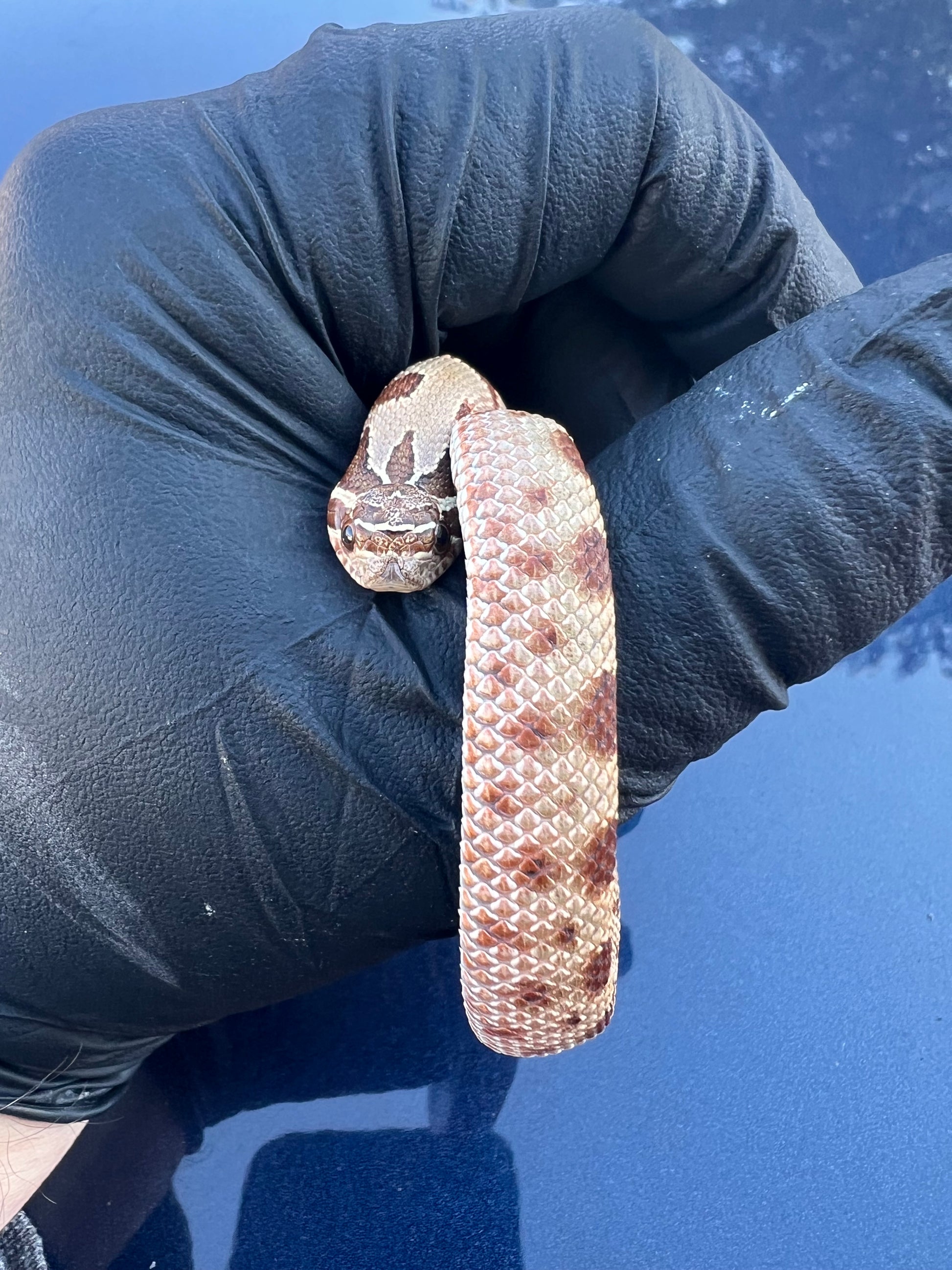 Beautiful red anaconda het albino western hognose snake . Hatched right here from an arctic albino anaconda paired with anaconda het albino. This girl is growing well and past the fragile hatchling stage . She eats consistently and handles well . She would make an excellent pet or fabulous breeder if you want to make super albinos or albino condas or high red condas like her. I ship fedex overnight to your closest fedex hub during colder months I ship to hub only .Shipping is free .